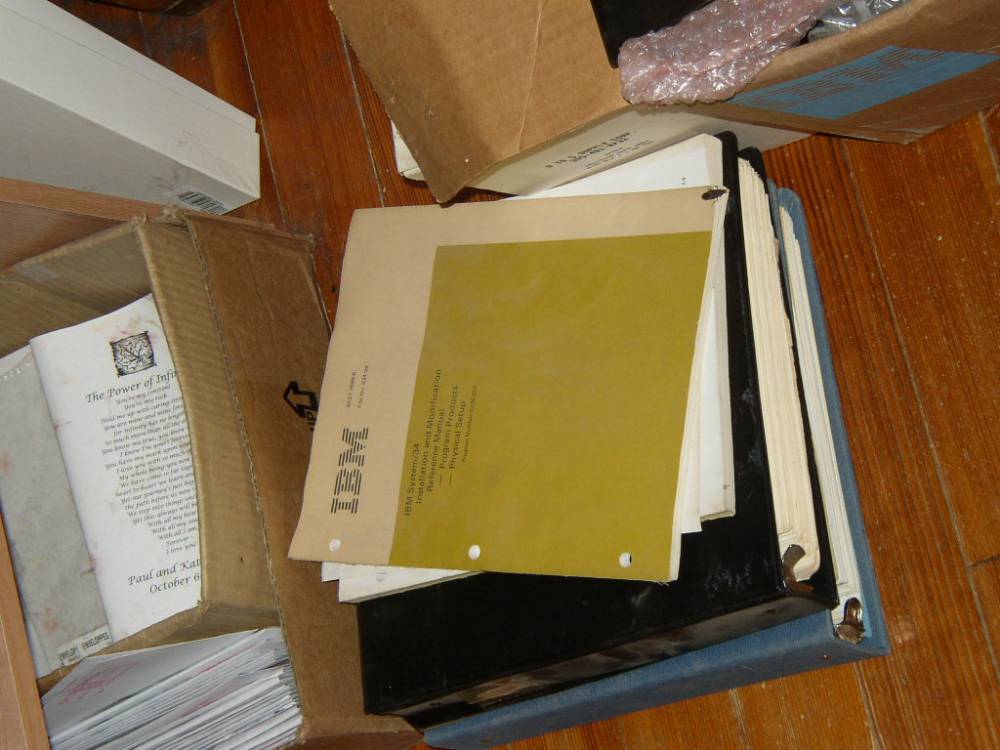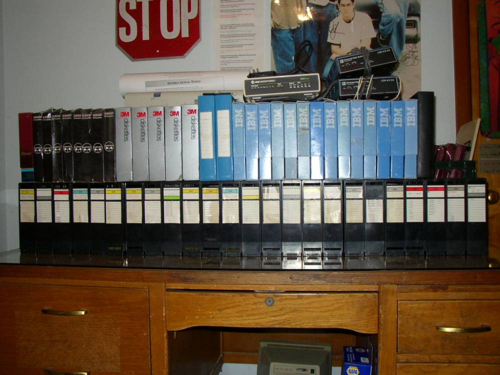 The diskette boxes and jukebox cartridges, and manuals.